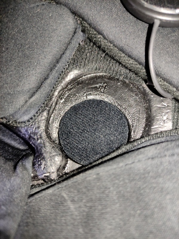 отштамповка под наушник. липучка круглая отклеивается и там еще где то на сантиметр углубление