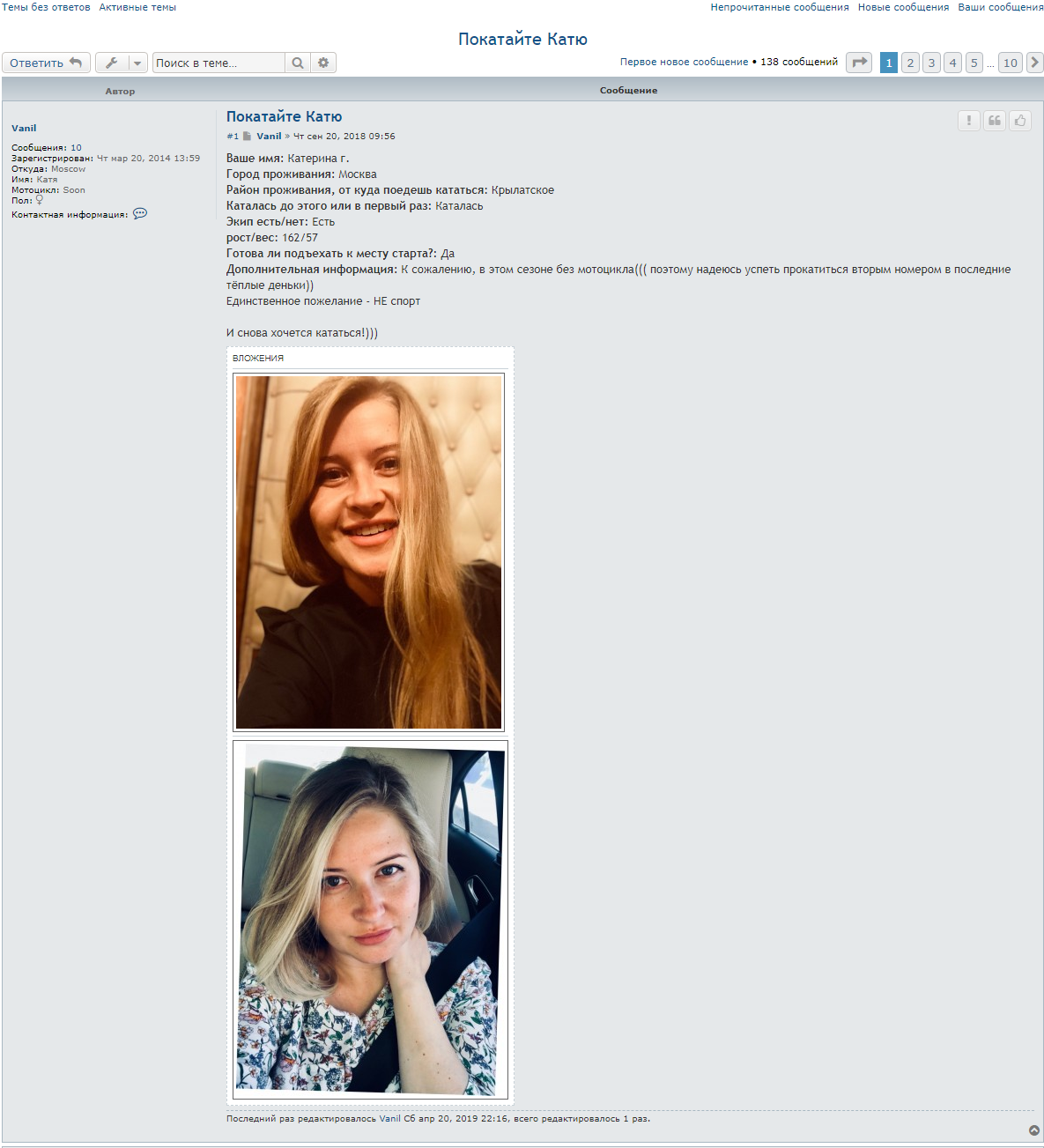И так и не научились делать полный квотинг первого постал, до того, как ТС удалит все фотки со словами "Фсе казлы...."Самоделкин96 писал(а): Пн апр 22, 2019 14:21 Гришеньka, а все ровно в итоге удалит фотки и редактирует первый пост, у нас тут превентивный флуд)