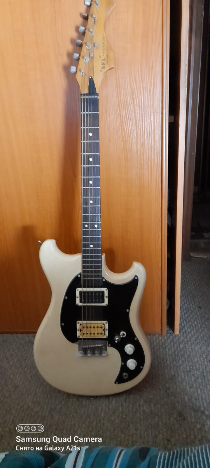 это дизайн неизвестного местного мастера времен конца 80-х начало 90..ибо был внутри обнаружен звукосниматель russton...остальное-аццкий колхоз перестроечных времен ..