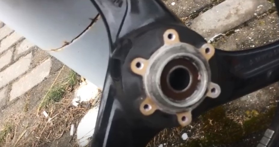 Всё. Теперь точно ясно, что колеса разные. У колеса для F4 на привалочных плоскостях крепления тормозных дисков к колесу нет ни каких выступов под болты. Поверхность ровная и в ней просто 6 отверстий.