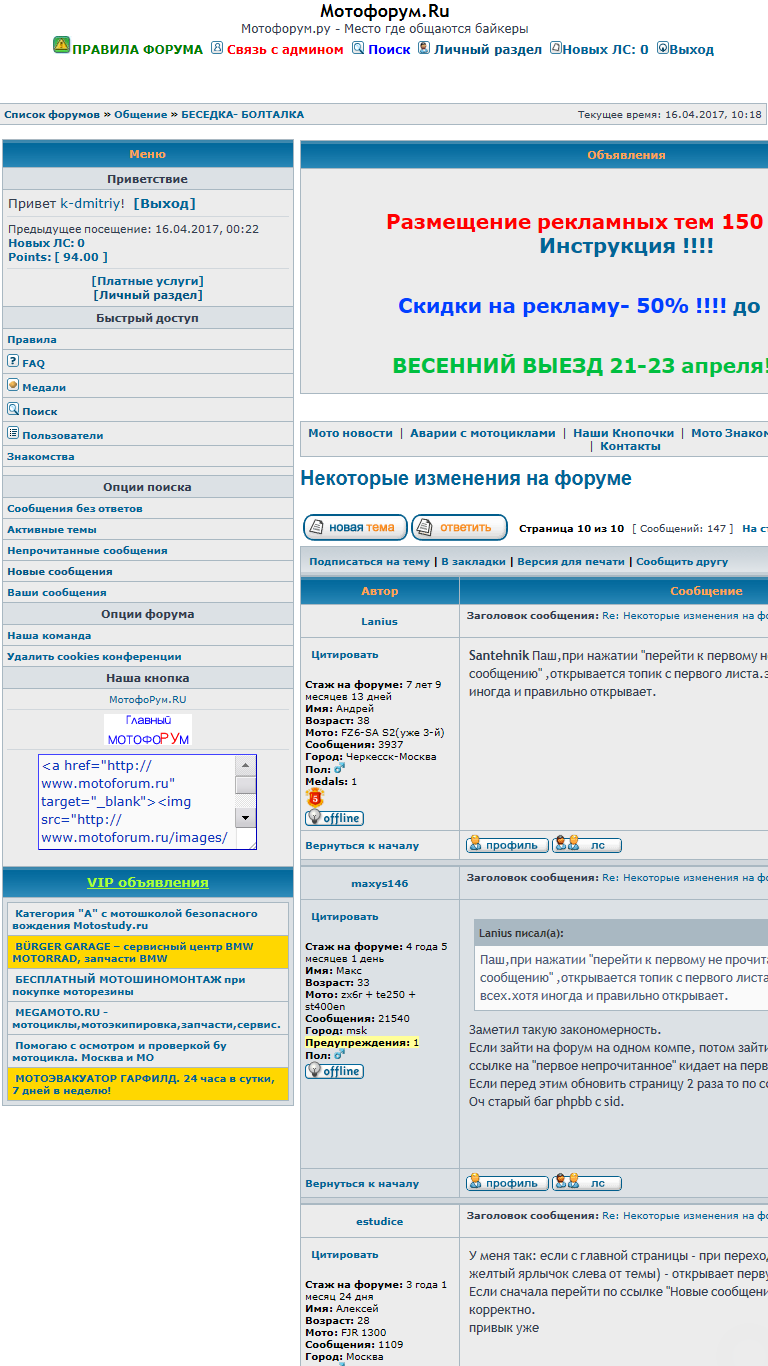 Re: Некоторые изменения на форуме