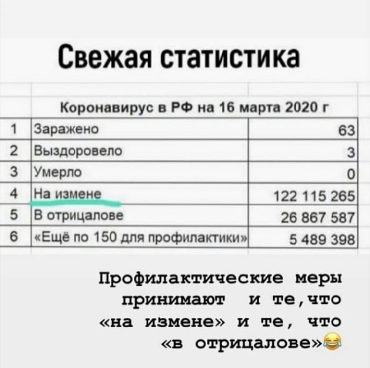 Сияние!...Barabas писал(а): Вт мар 17, 2020 11:37 В общем, закупился гречкой, макаронами, мясом, туалетной бумагой, алкашкой и антибиотиками. Осталось найти двустволку и патроны.