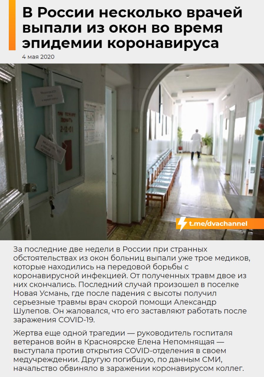 А из-за того что они находятся в эпицентре максимальной концентрации этого дeрьма и практически незащищены, они поголовно заболевают с тяжёлыми последствиями. И смертность среди медперсонала очень высокая.