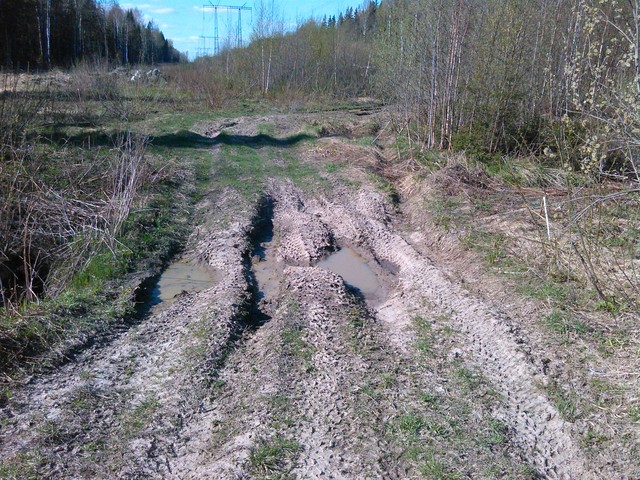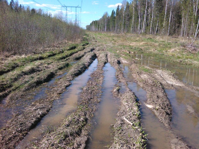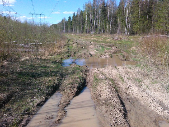 Вот снимки той просеки, где мне надо ездить, сегодня снимал. Лужи стоят, хоть дождя не было уже 5 дней, там всегда грязь.