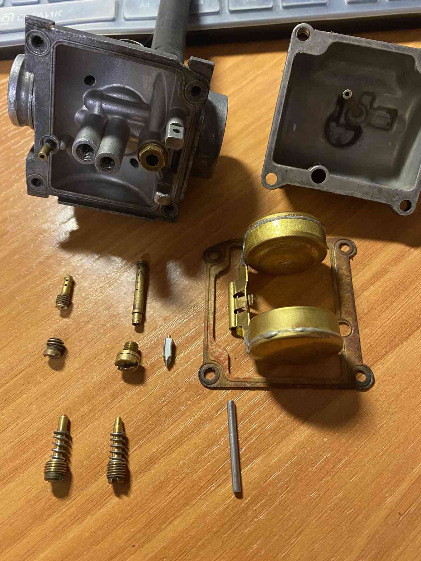 не вижу на поплавке только один язычок для регулировки?колодец для иглы на медной прокладке,проверял держит вакуум тоже?