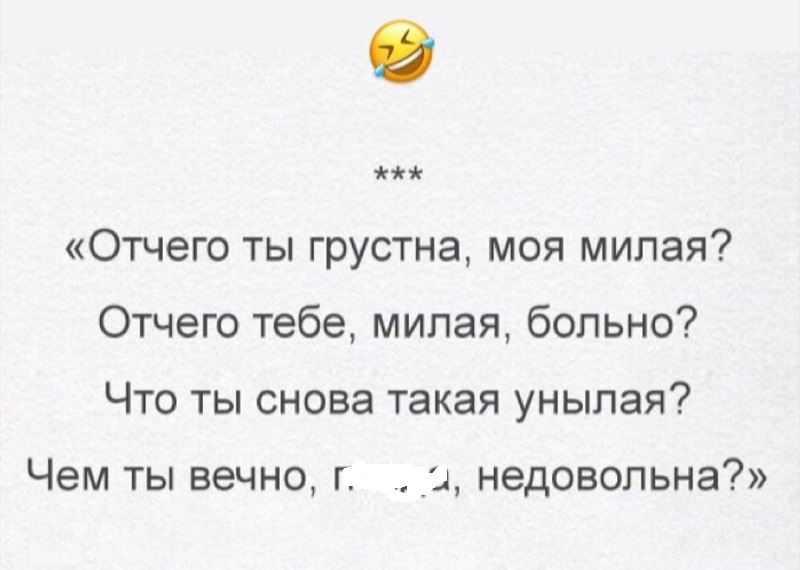Подходя ясен. Женщина не должна меняться и подстраиваться под мужчину. Либо мужчина принимает что есть, либо идет искать дальше. (Кошки и женщины делают, что хотят. Собаки и мужчины к этому приноравливаются). Это понятно.SheWolf писал(а): Чт фев 27, 2020 13:24 В контексте обобщённого бабдур или погоды - абсолютно. Не нравится погода - едешь туда, где лучше. Не нравится бабадура - ищешь недуру. Все дуры - ну, можно найти небабу, а, например, умного мужика. Смысл его "констатировать"?