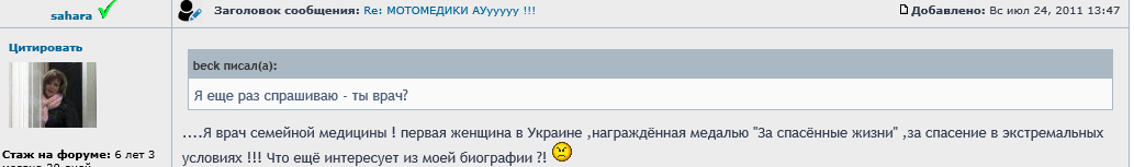 -Ты добровольно позиционаруешь себя среди людей Мотофорума врачом.