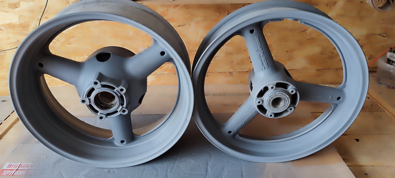 Диски после пескоструя, под грунтом. Ждут покраски в кенди.