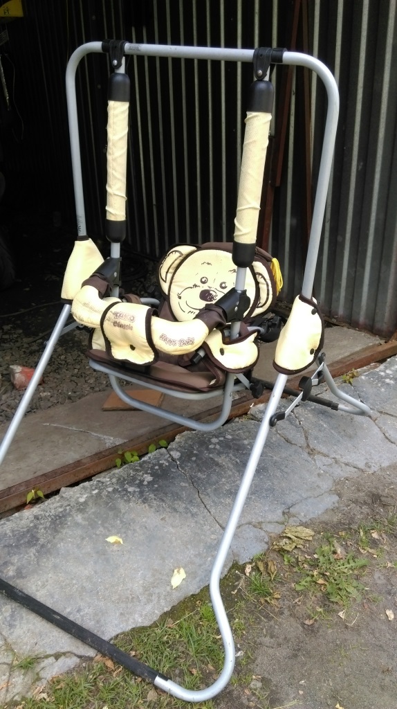 Детские качельки. На возраст с момента как сидеть начнет и головку держать, до килограммов 8-9. Наш "кабанчик" хоть и по возрасту маленький был, но уже под 10 го весил и качелькам туго приходилось.