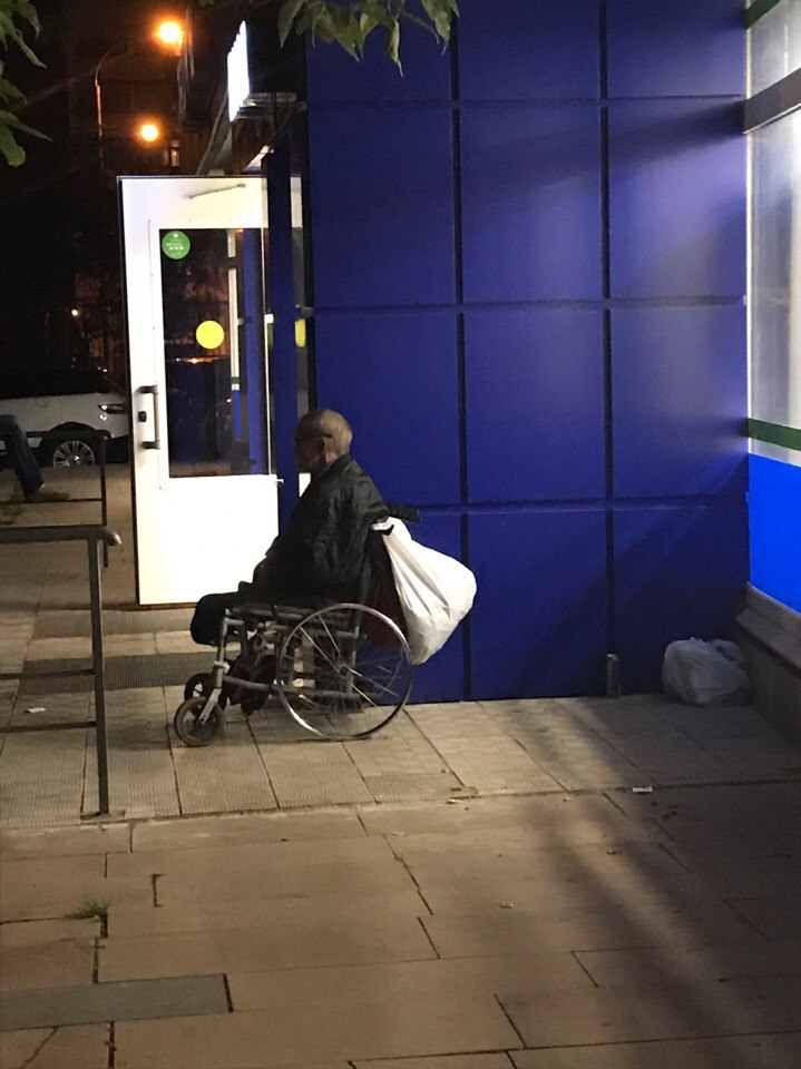 Ниже фото, дедушка на месте как обычно. Ждет коляску наверное, зря ему вчера сказал. Надеется и в тоже время думает что опять обманут и не помогут!((( Но мы не такие.
