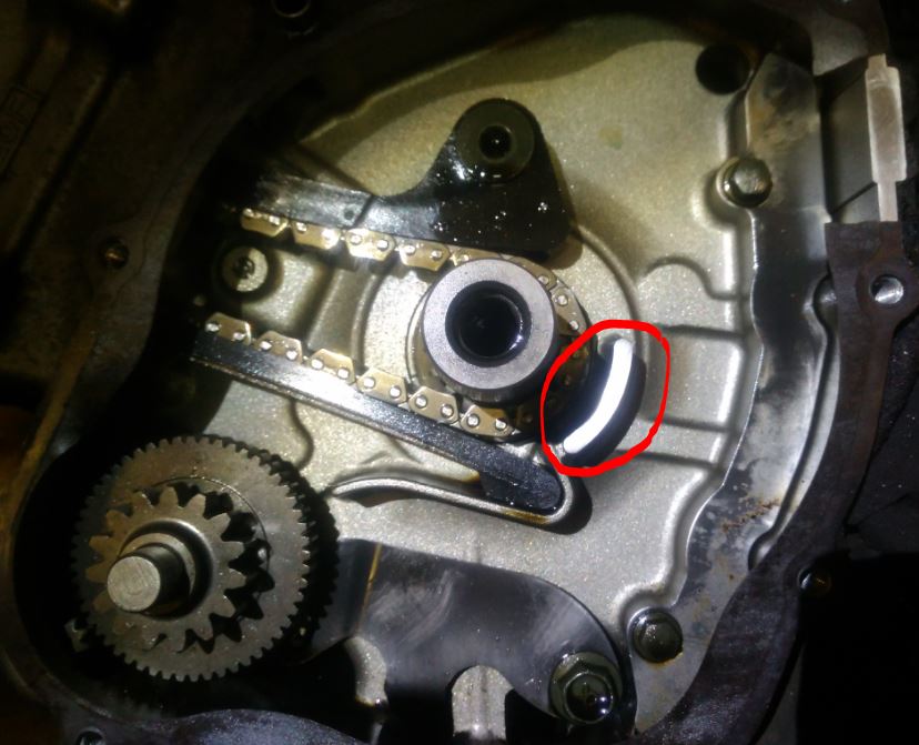 - попадание в масло и далее в зубья шестерни какого-то твердого осколка, например, потерянного сухарика клапана или регулировочной шайбы клапана.