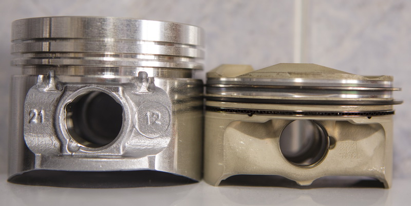 Поршень DF с пробегом 100 тыс км. Конструктивные изменения поршней, связанные с переходом не безвтулочную верхнюю головку шатуна, снижение высоты компрессионных колец и площади юбки поршня стало родоначальником следующей проблемы - Перегрев поршня, который сопровождается следующей работой двигателя. ЭЭЭЭ.. Да это ещё с чугуниевыми цилиндрами. Щас уж и нет таких наверно.