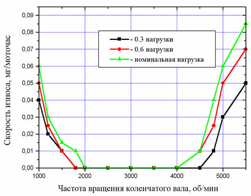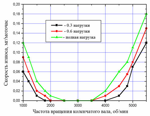 Так меняется средняя скорость износа первых поршневых колец двигателя при изменении режима работы