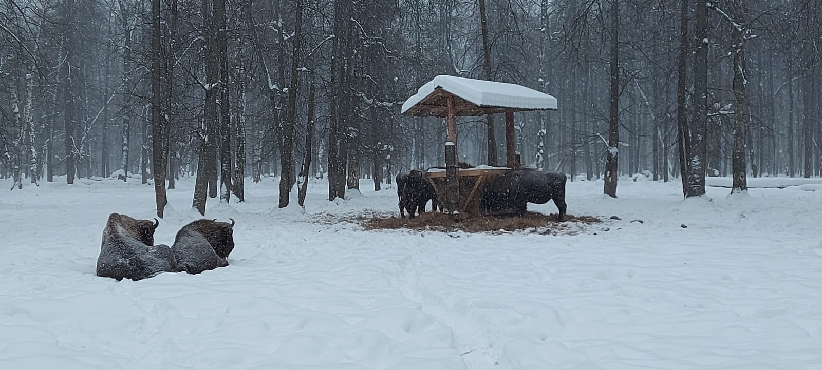 Причём, летом туда лучше не ездить, зубры в основном гуляют в лесу, попивают зубровку и закусывают свежей травкой с желудями