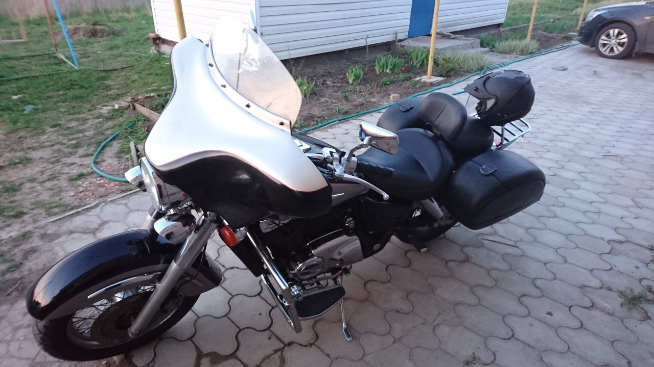 После всех мытарств был выбран и куплен Shadow 1100 Aero 1999 года. пробег 70, навесное на фото, дудки Винс Хайвс, дребезжит и шумит как сталелитейный завод))