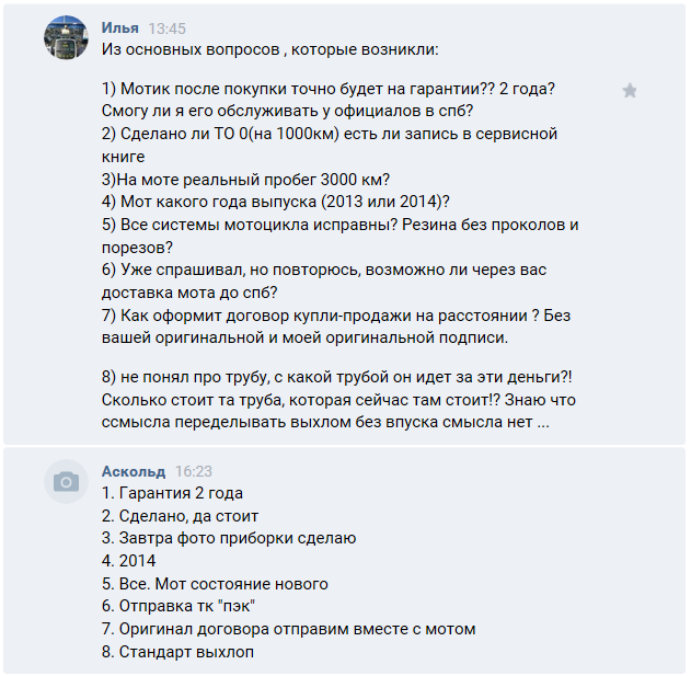 azarov_a писал(а):А что тебе мешало попросить полностью копию ПТС, попросить за деньги, что бы кто-то сходил в салон и сделал видео детальное мотоцикла, описал тебе все недостатки?
