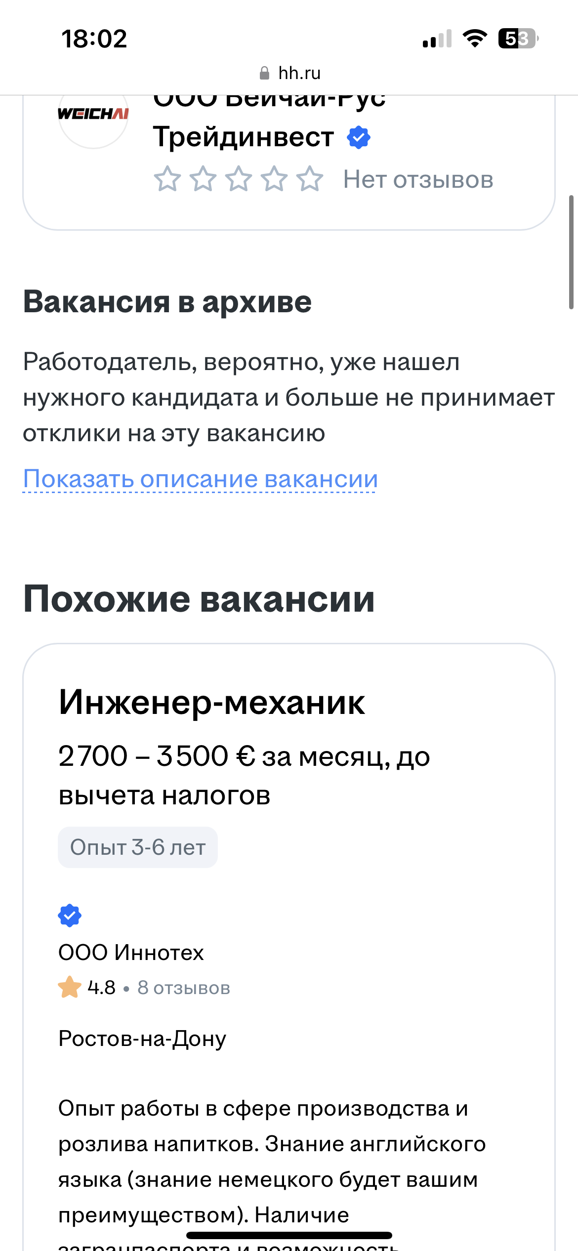 Комрады привет! Прошу маякнуть, может кому работа нужна или кто хочет поменять? В китайскую компанию по производству и поставке двигателей Weichai на Ростсельмаш, нужен сервисный инженер. Работа при заводе, описание на Хэд Хантере,- гуглить Weichai, откликаться туда же. Работа официально по ТК. Остальные вопросы в личку.