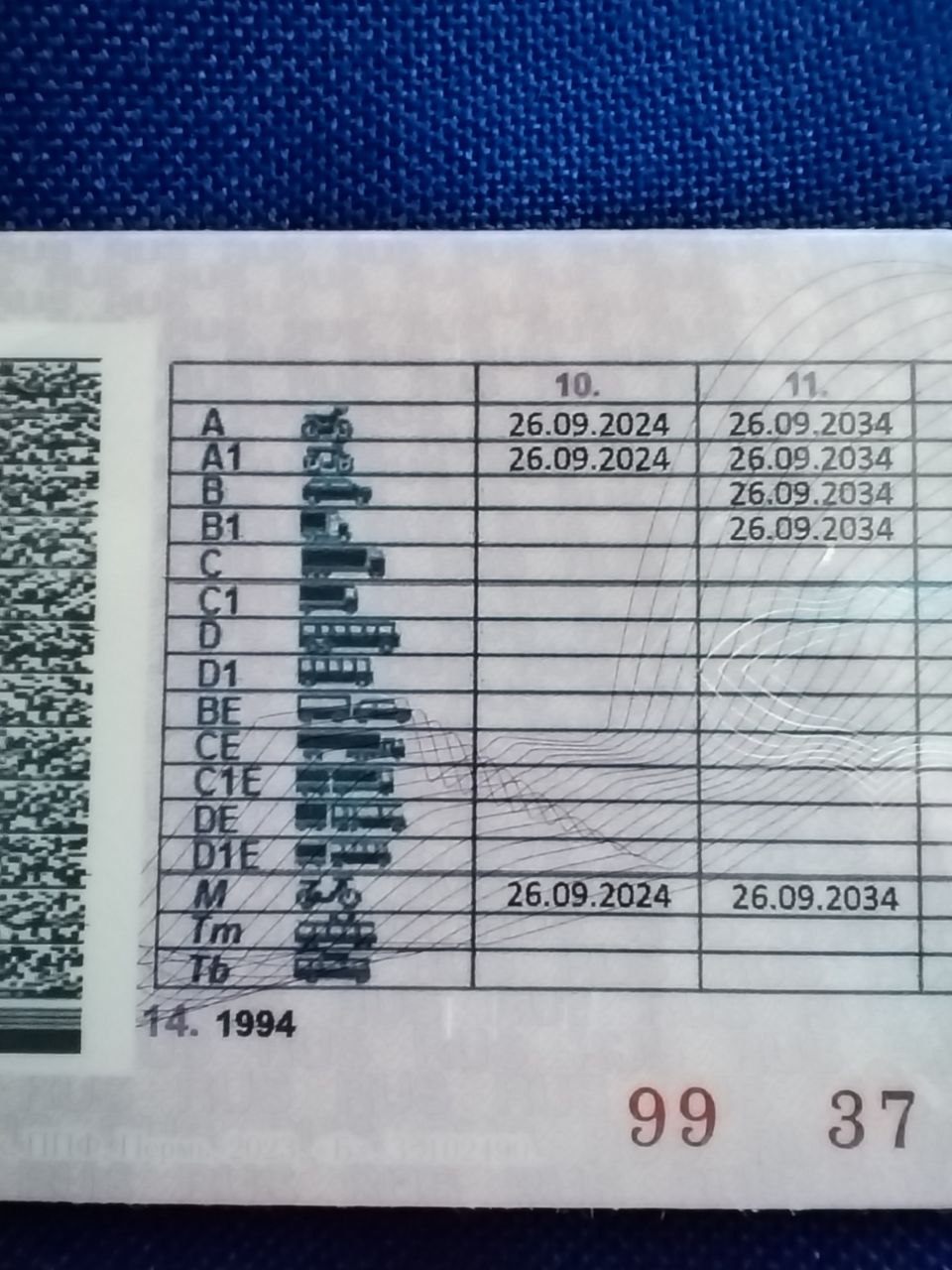Снизу 1994 - дата получения категории В, тогда не было никаких М и В1.