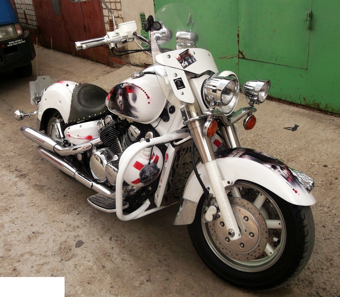 Сначала был под чехлом, потом чехол начало сдувать и рваться. В итоге чехол почти слетел и весь порван, нету седла на мотоцикле, стоит по сей день без движения.