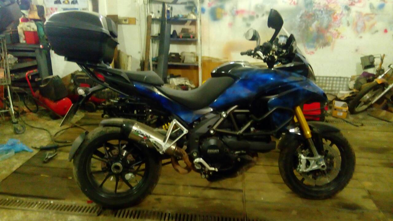 Сегодня ночью угнали из моего гаража по адресу Долгопрудный ул Виноградная 7, мотоцикл приятеля - Ducati Multi Strada 1200 11 года гос номер 9713 АО77, мотоцикл синий (аэрография), тюнингованный глушитель, накладки защиты ручек с повторителями. Мот на фото. Прошу репоста. Связь - восемь девять 6 семь один два три 07 ноль четыре. Вознаграждение.