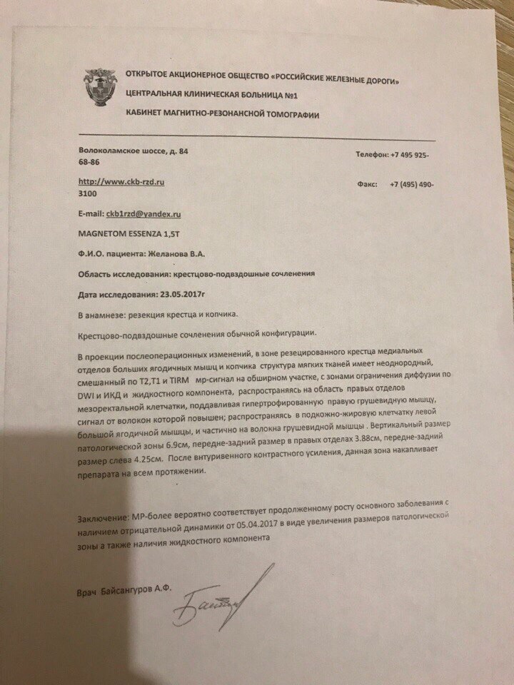 Дорогие друзья, знакомые и вовсе незнакомые люди! Требуется помощь в сборе средств для операции в Венгрии. Диагноз:Хордома крестца. Лерочке нужна срочная, уже третья по счету операция. У неё невыносимые боли и ей тяжело передвигаться. В Москве врачи отказались нас оперировать и предлагают лишь паллиативную лучевую терапию. К сожалению во всем мире очень мало специалистов в этой области. В Германии, где выполняли вторую операцию, врачи тоже выглядели растерянными во время консультации. Нам посоветовали обратиться к крупнейшему специалисту в Европе в области опухолевой патологии крестца - хирургу-онкологу Dr. Peter Varga, клиника которого находится в Будапеште. Мы написали ему письмо и он готов нас принять,и время совсем не терпит,рецидивная опухоль больше в два раза,чем была перед второй операцией, и она очень быстро прогрессирует.Но принять и прооперировать Леру он может,только когда деньги поступят на счёт клиники. В письме он написал,что надо удалять полностью крестец и ставить имплант, а также выполнять пластику мягких тканей. Стоимость операции и трёх недель восстановительного лечения стоят 48 тысяч евро. Времени очень мало. Я понимаю,что сумма огромная, но надеюсь с вашей помощью спасти Лере жизнь. Спасибо всем, кто откликнулся ранее, и заранее спасибо всем, кто поможет теперь! Номер карты сбербанка: 5469380016225970 Желанова Наталья Борисовна PayPal: natali-prt@mail.ru Tel:+79154607511 ◦