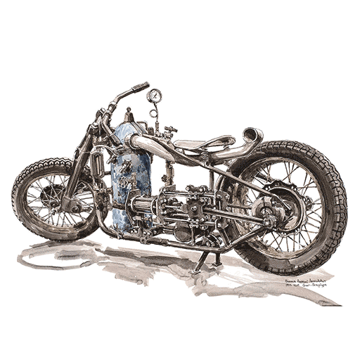 - Мотоцикл: Паровой мотоцикл собственного производства