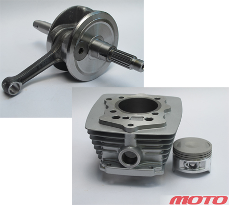 - Другой формы пластик обвеса, отсутствует передний бугель, вместо него пластиковый грязезащитный щиток, закрывающий оребрение цилиндра от летящей грязи, отсюда меньший вес.