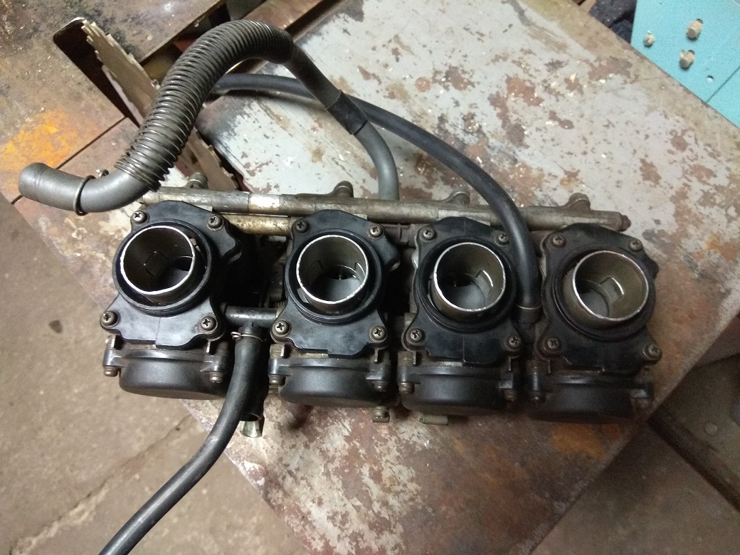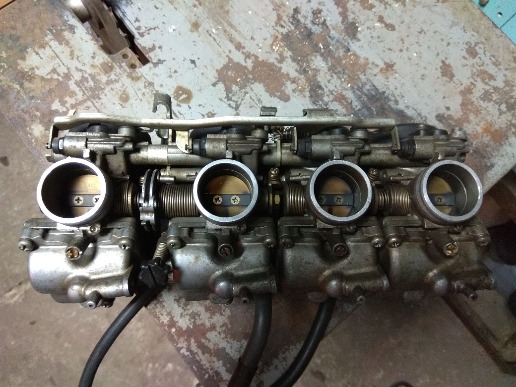 Прошу помощи у знатоков Honda. Пытаюсь своими силами потихоньку починить Honda Jade ( CB250f ) столкнулся с тем, что в один прекрасный момент из шланга обратки потёк бенз. После снятия карбов нашёл что западет один из поплавков. Всё промыл, почистил, и не поставил на место ( не было времени ставить на мот ) так он пролежал зиму в гараже. Сейчас, когда появилось время решил поставить. После установки и не удачной попытки запуска выкрутил одну свечу для проверки искры. Когда крутнул стартером был сильно удивлён фонтаном бензина из целиндра. Снял опять карбы и увидел что поплавки вообще не закрывают. Посему было принято решение о поиске рем комплекта на карбы. И тут нарисовалась проблема: На карбах не написана модель. Прошу помощи в гадании по фото. Какая это модель Keihin? И где можно найти ремкомплект на них в Москве. Прошу прощения за сумбурный текст, я читатель в интернете, а не писатель. С телефона загрузить не удаётся. Позже попробую с компа.