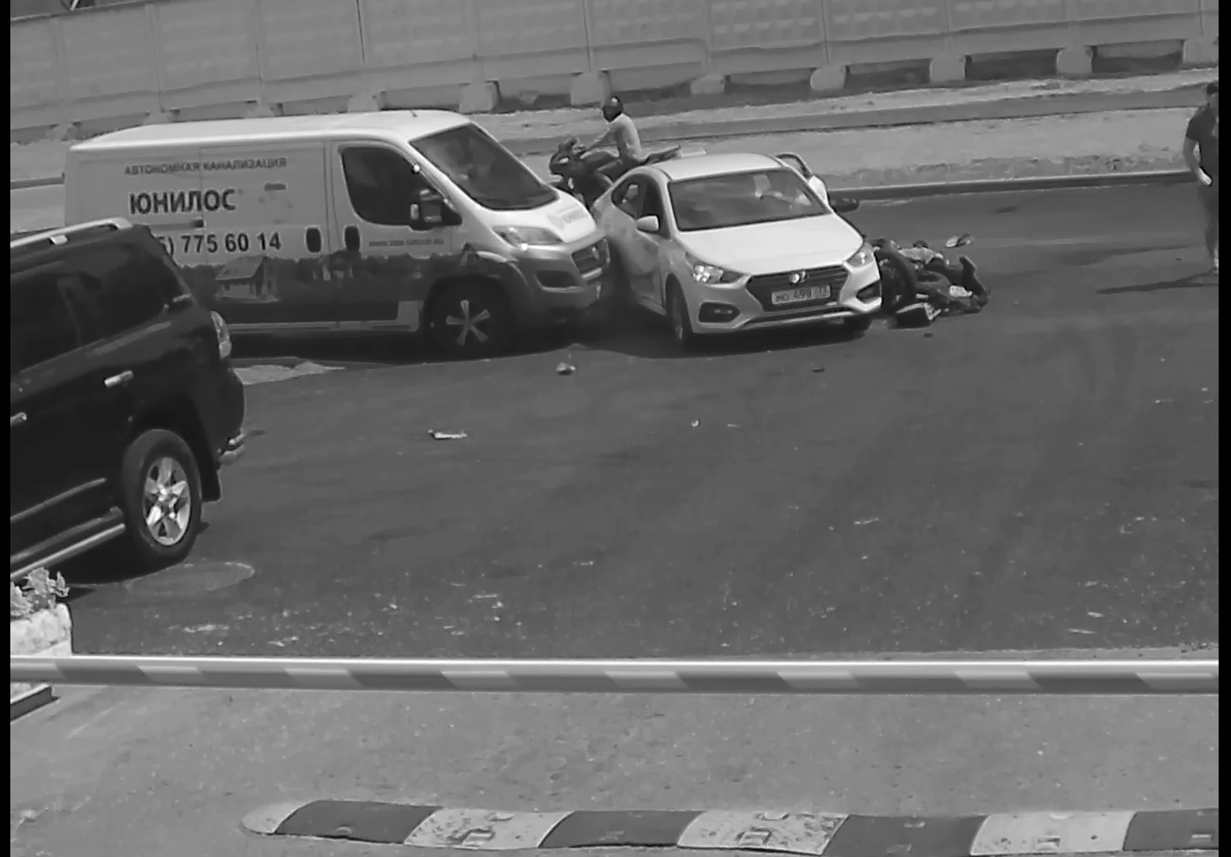 Нашел пару кадров с пилотом, предположительно на ямахе, который мог видеть всю картину ДТП.