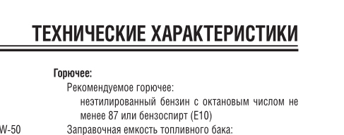 "Неэтилированный бензин с октановым числом не менее 87 или бензоспирт (10)"