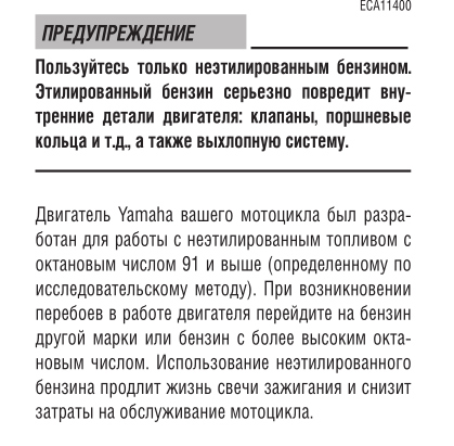 Это просто ямаха облажалась с переводом, regular unleaded gasoline 87 ron+mon/2 это наш 92Open писал(а): Пт мар 13, 2020 00:31 "Неэтилированный бензин с октановым числом не менее 87 или бензоспирт (10)"