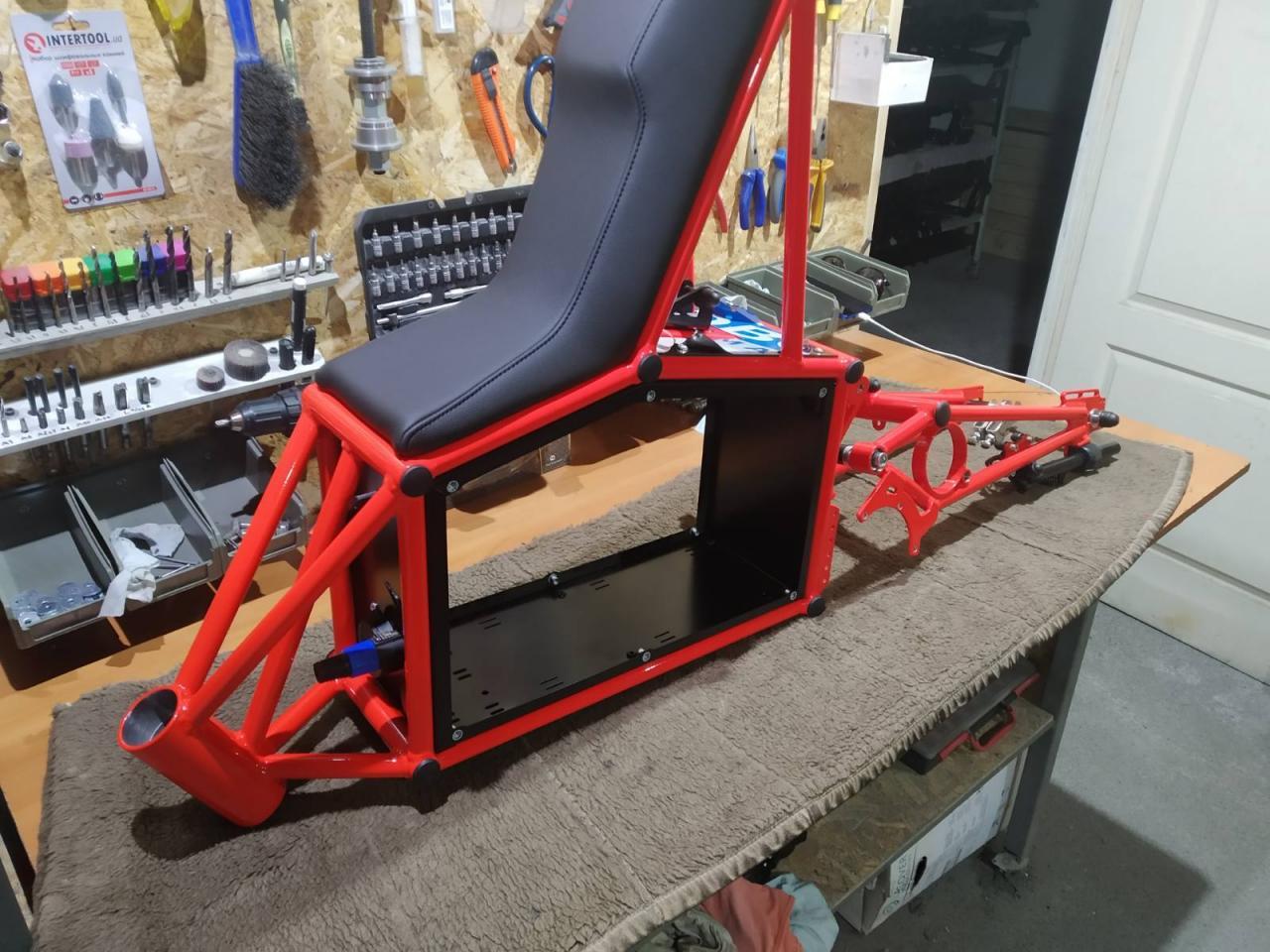 Ты просто лепишь детали, или понимаешь что делаешь? Какая у тебя масса мота с и без ездока 75кг? Где центр масс мота без ездока, центр масс ездока и совокупный? Понимание кинематики есть, или просто велосипед с мотором?
