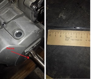 И только когда прокрутил почти на 180 градусов. Метка находилась внизу - поршень подошел к ВМТ. По линейке глубина примерно 4,5 см.