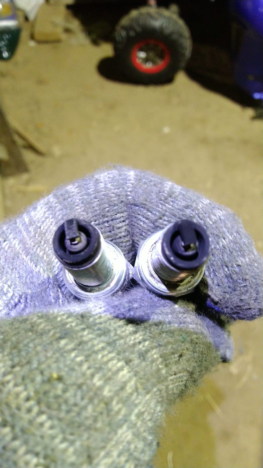 Нагар на свечках чуть богатый (лехкая махровость), причем одна свечка почти нормальная а вторая побогаче. Но там другая известная проблема со времен покупки - тросик шокера в каждый карб заходит через пластико-керамический фитинг (похож на карболит), который притягивается к карбюратору скобой и винтом. На одном из карбов этот фитинг расколот и через него подсасывает воздух, а сам тросик заедает если открыть и закрыть подсос, при этом постоянно немного подбогачивает.