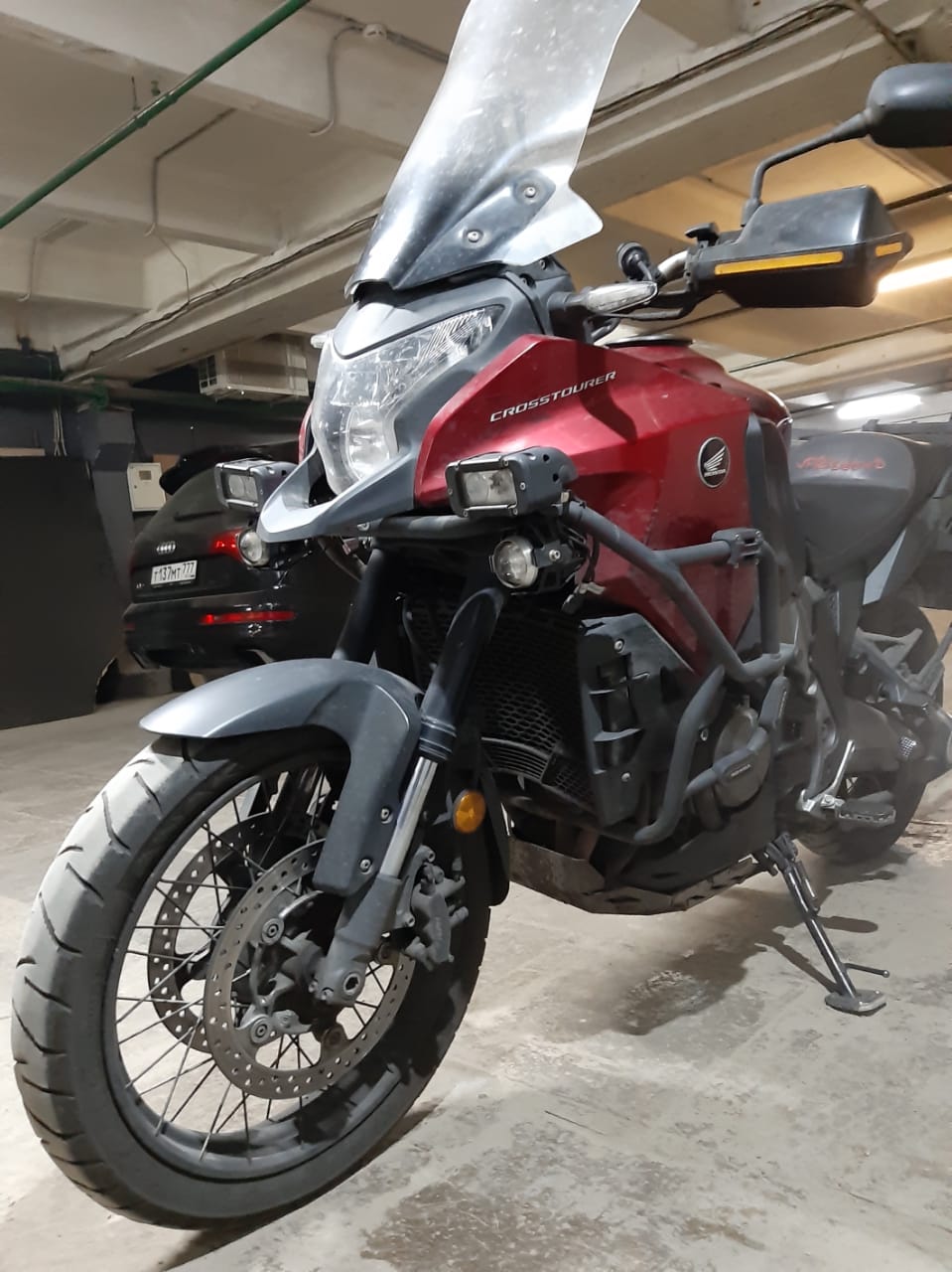 Две пары противотуманных фар, защитные дуги со слайдерами, розетки прикуривателя и USB(два гнезда), подогрев ручек и сидения, защита рукояток, центральная подножка, слайдер на глушителе, защита радиатора, удлинитель переднего крыла, багажник под кофр(кофр givi trekker outback 60 л.), боковые рамки под кофры(2 кофра givi по 29 л. с сумками.), сумка под инструмент под багажником, защитная прозрачная плёнка на баке, перешитое заниженное седло, сигнализация с обратной связью StarLine, набачная сумка givi, крепление под навигатор МТ 4302 с питанием( навигатор в комплекте), расширитель боковой подножки, защита двигателя.