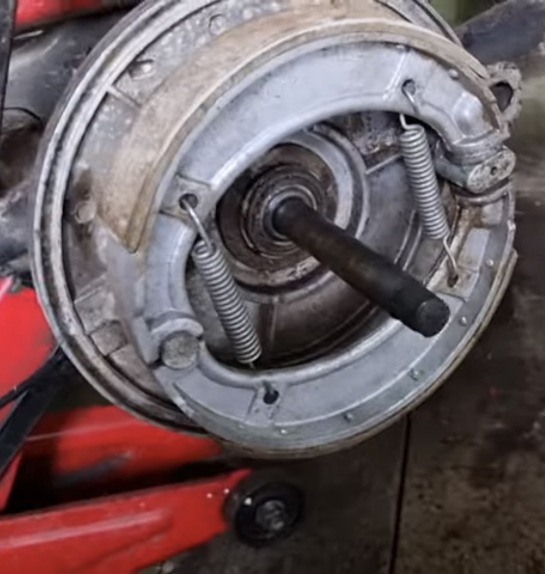 Вот внутри колеса коляски Спутник такая крышка должна быть , которая держит колодки .