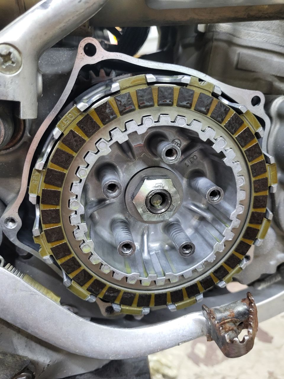 Количество дисков в норме с мануало, толщина стальных и фрикционных дисков в отличном состоянии по мануалу мерил. Диски сцепы не гнутые, ровные. Масло было хз какое, мотюль 10w40. Щас залил тотал 10w40, без антифрикционных присадок