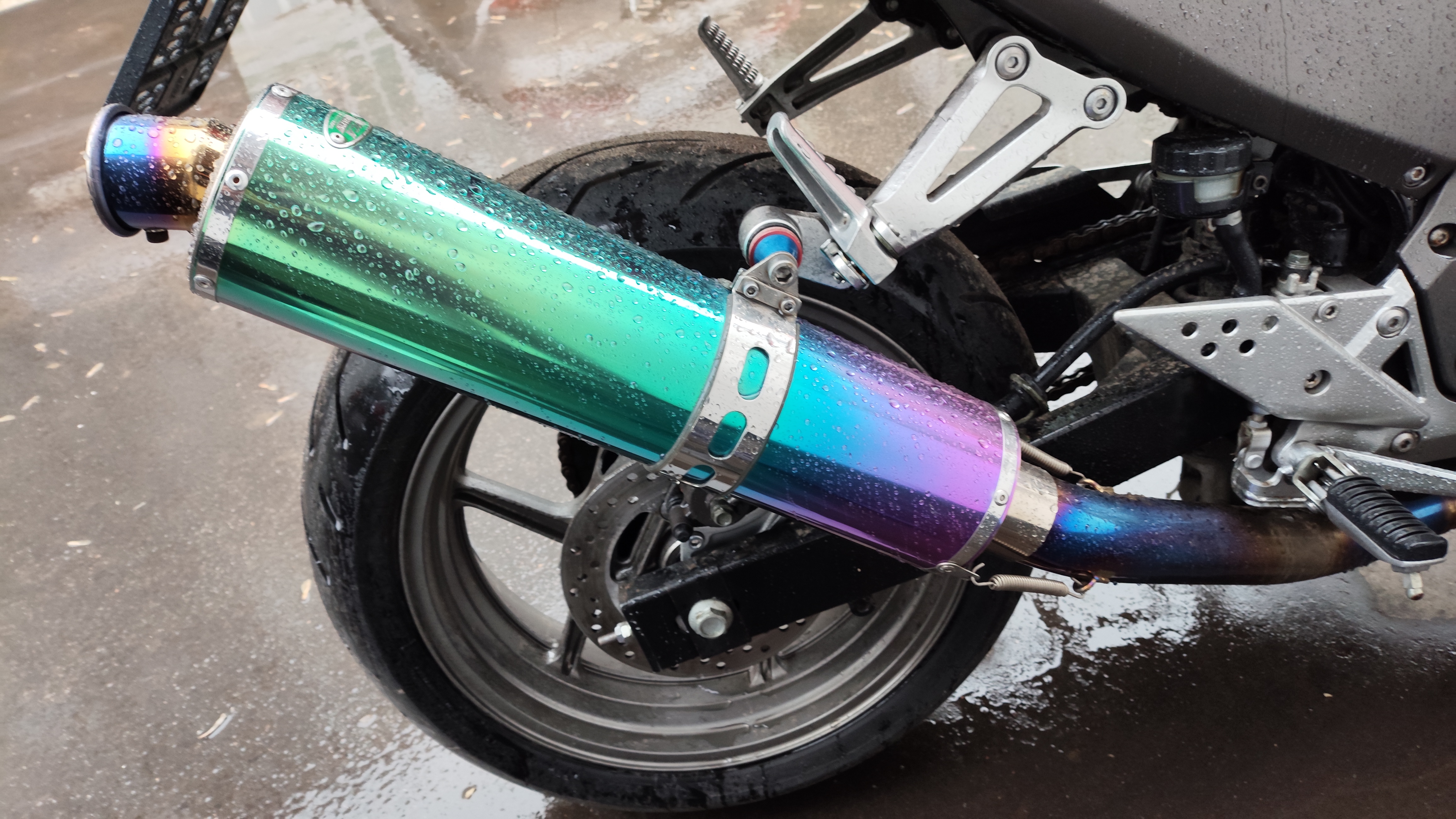 Самоделкин96, инспектору не смог и слова сказать, сразу развернул. Громче чем сток, но не прям по ушам бьёт. С серебристой пленкой идея, но инспектор сразу сказал, что должно быть написано Кавасаки на глушителе (не знаю где он хочет это найти